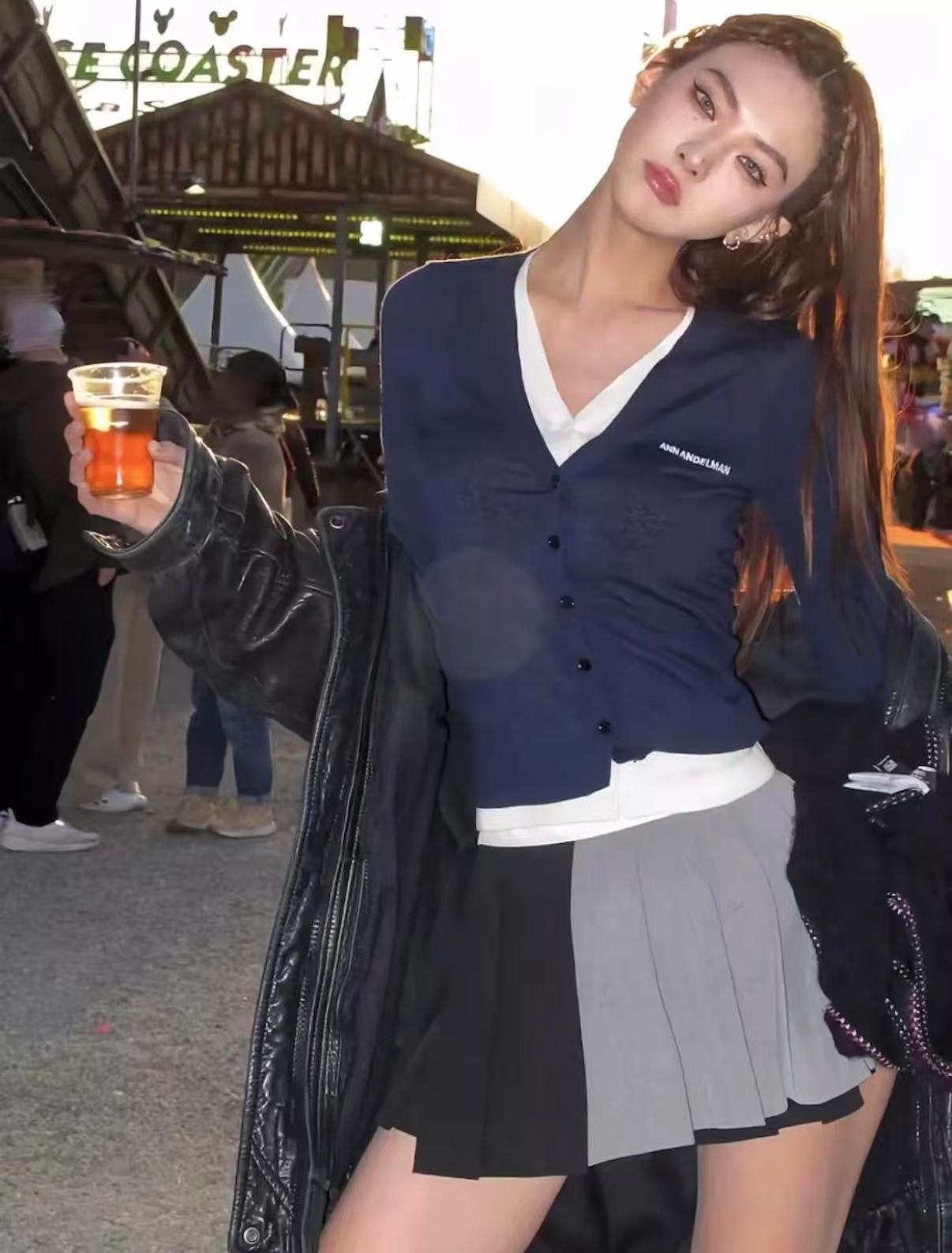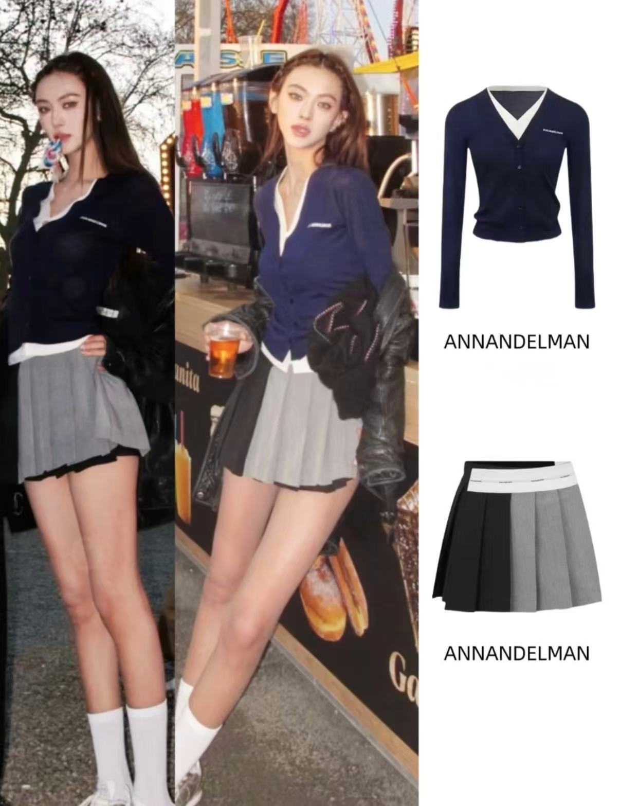 Ann Andelman Dark Royal Blue Fake Two-piece Wool Long-sleeved Cardigan