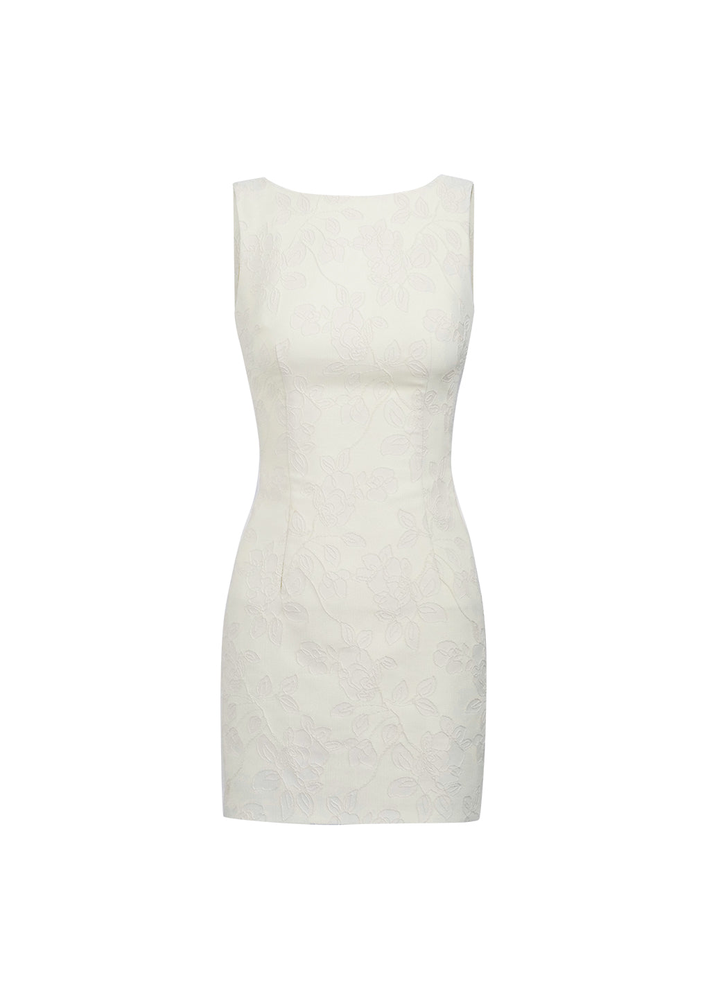 Artel Retro White Jacquard Open-Back Pearl Bodycon Dress