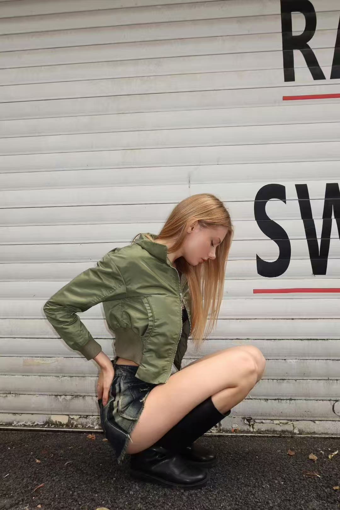 YJ Collared Double Zip Jacket In Green