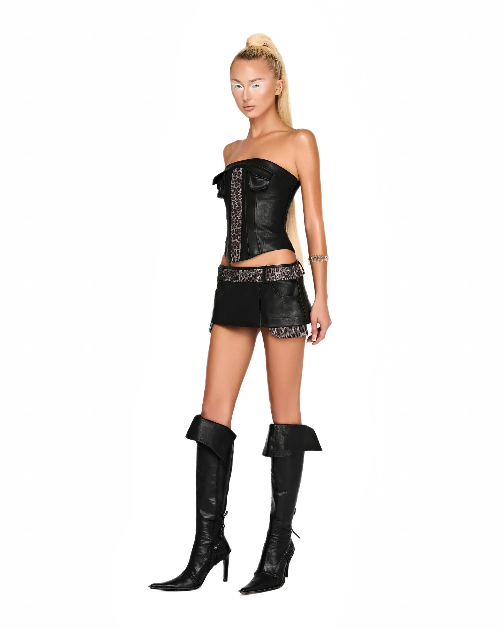 - Leopard-printed detail.