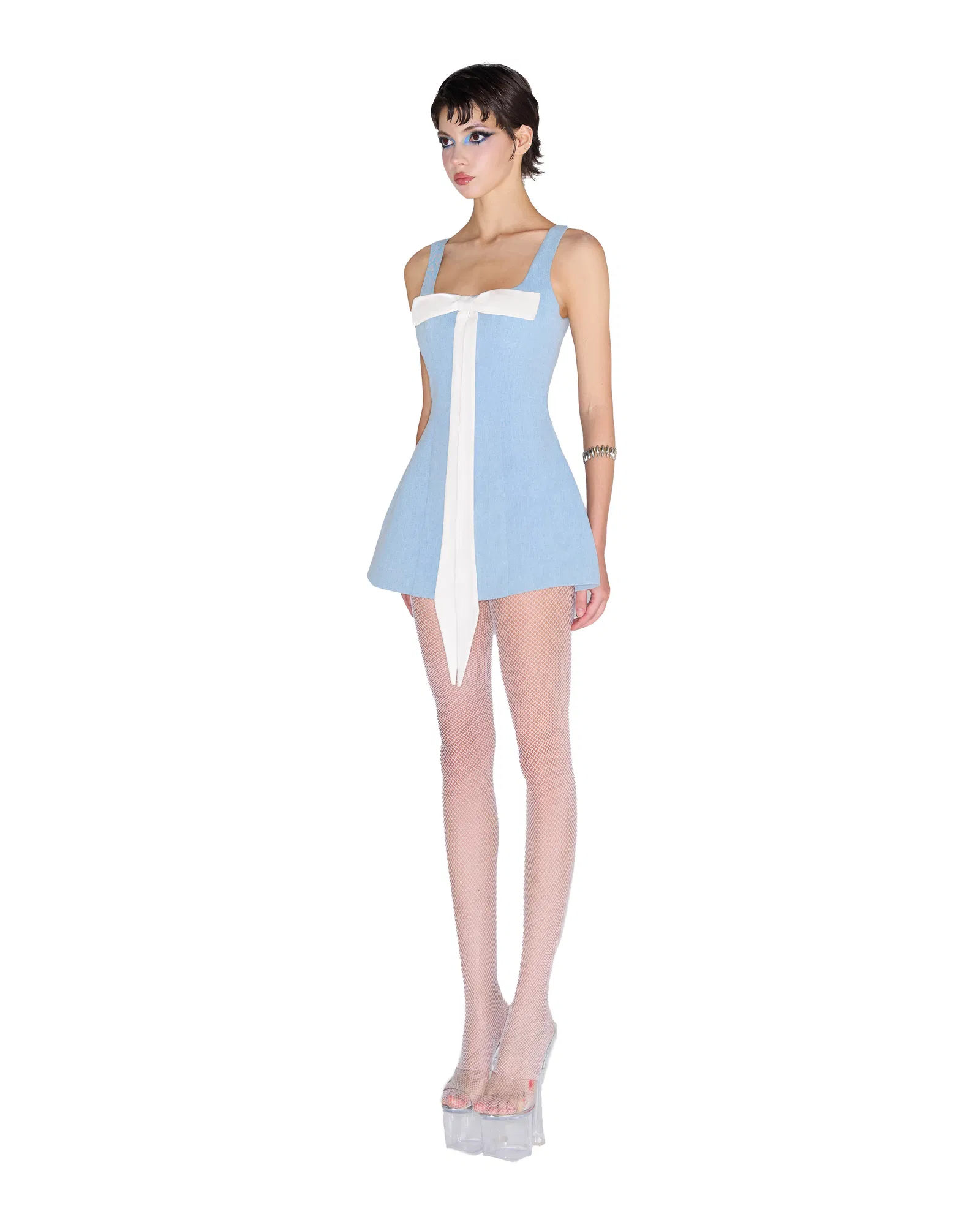 - Detailed highlights of large bows and long straps create a unique highlight for outfit