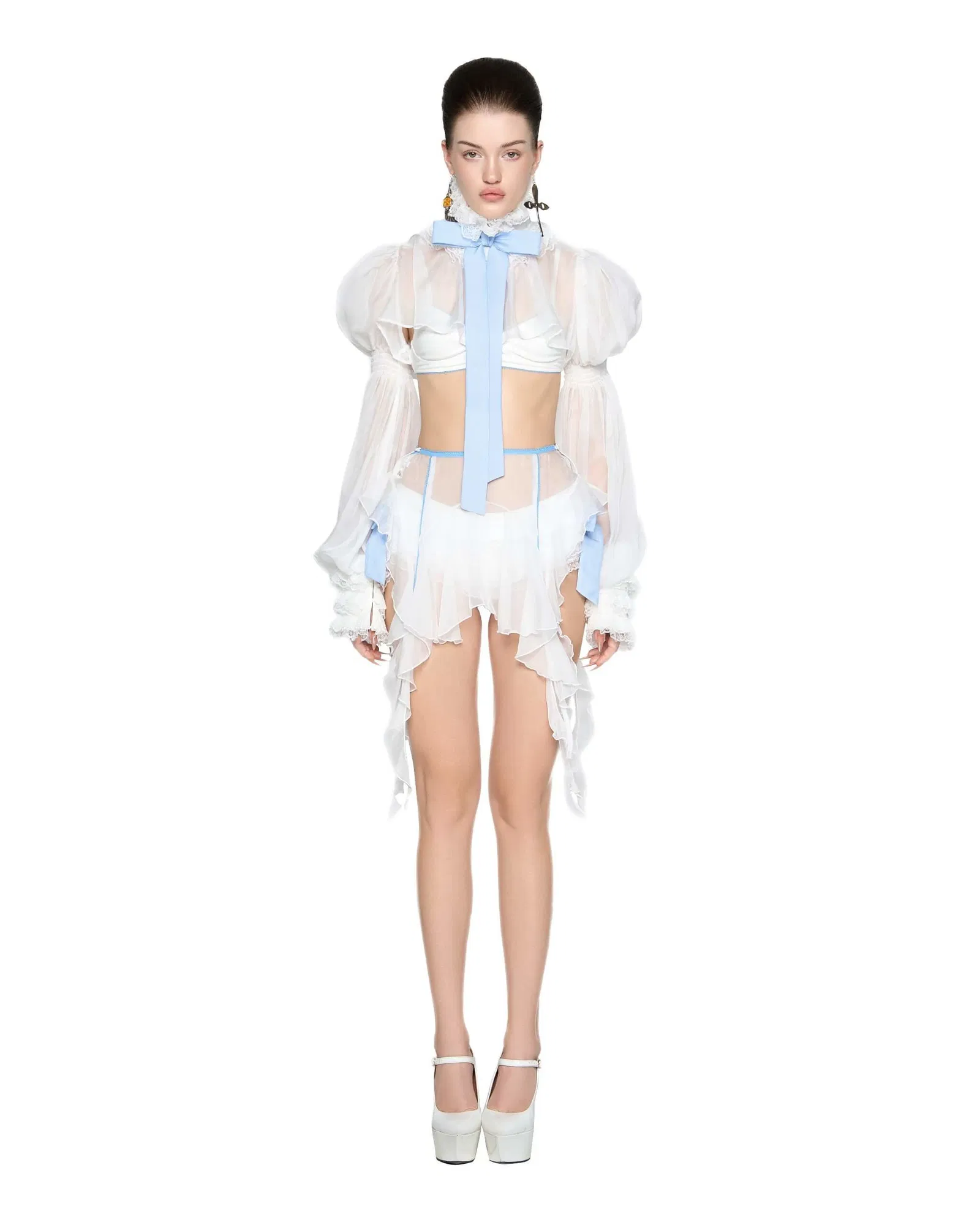 - Outside set including long-sleeves top and mini-skirt