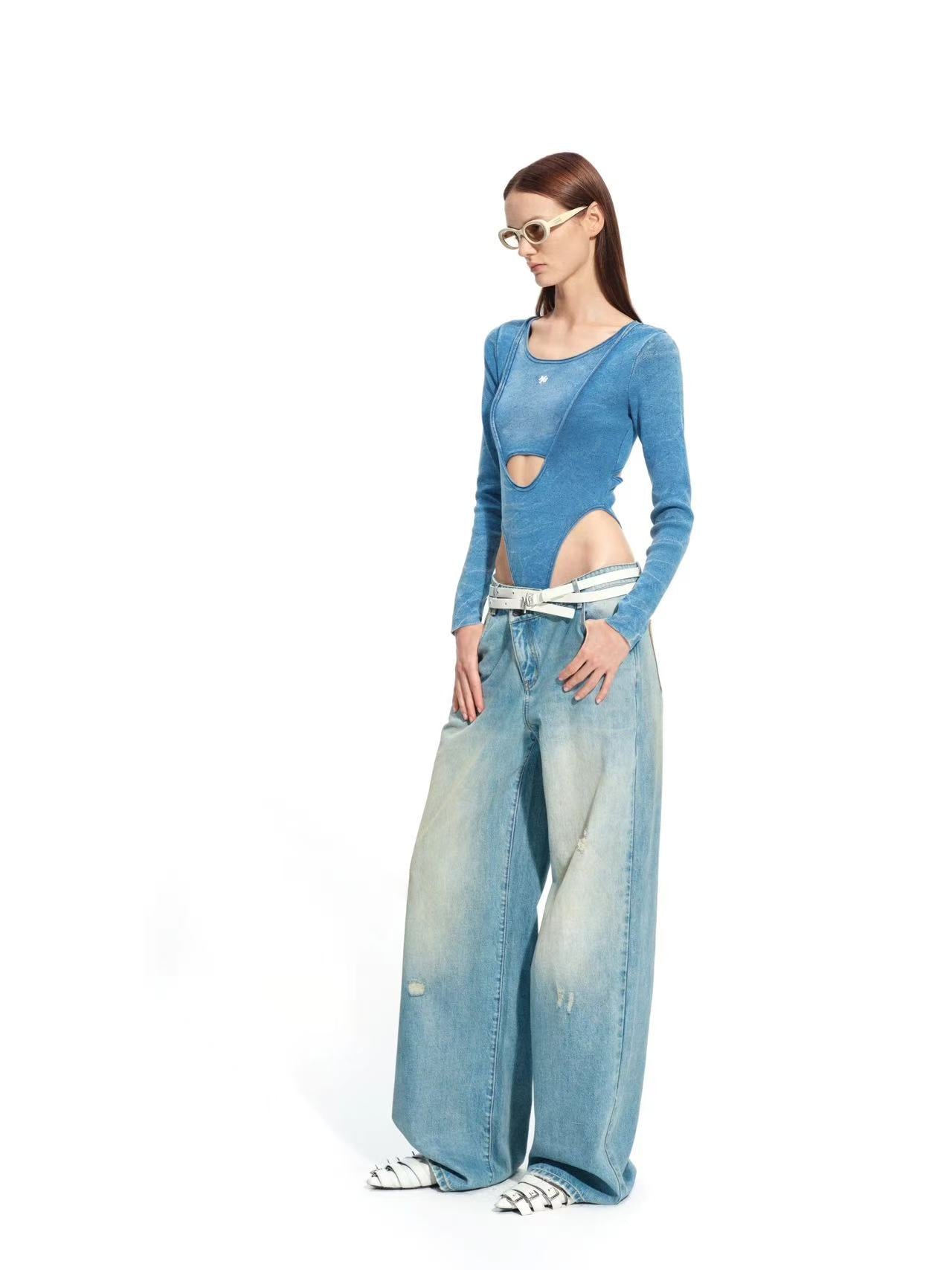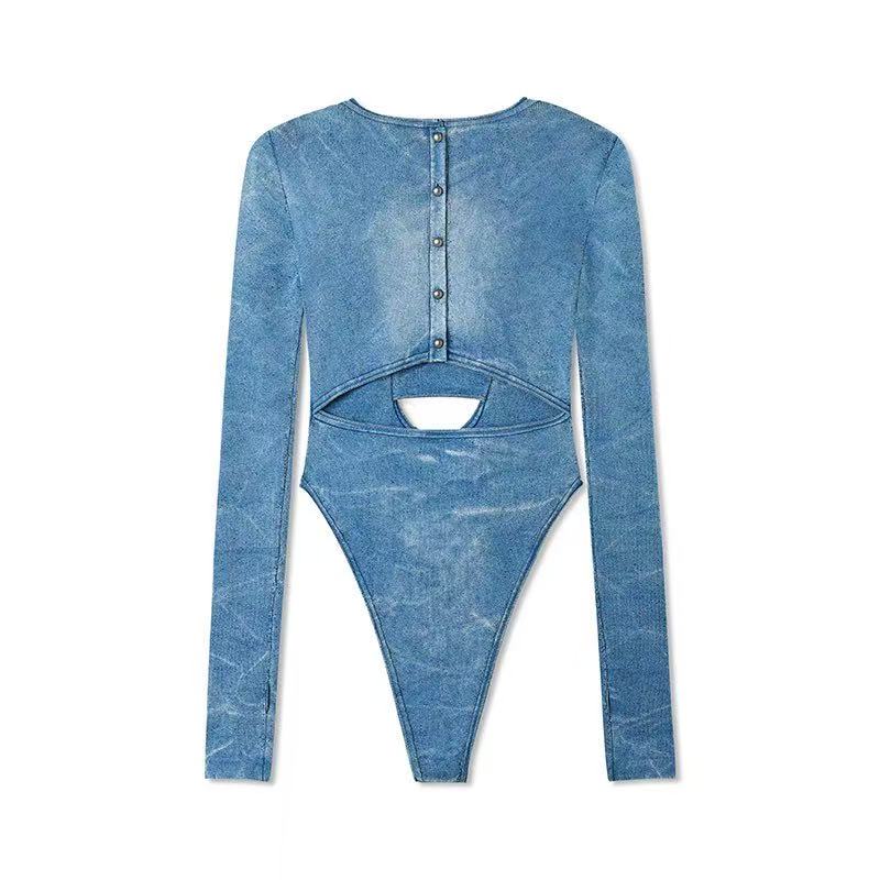 - Structured washed knit bodysuit