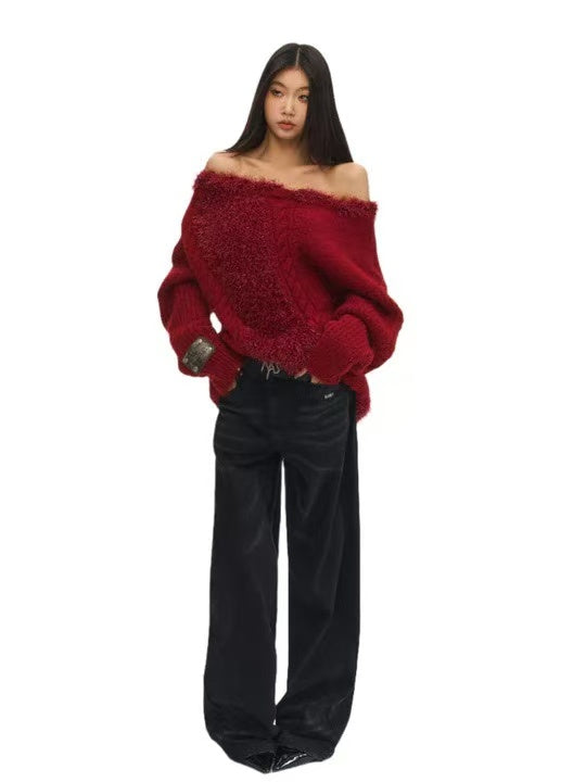 Naws Feathered Yarn Off-shoulder Sweater